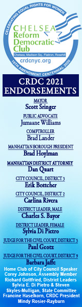 Wed., March 31, 7pm via Zoom: 10th Precinct Community Council | Larry O’Neill, president of this civilian-run, info-centric monthly gathering, continues once again convenes the meeting via Zoom—and says you can count on that forum for the foreseeable future. Resumption of meetings in the brick and mortar world (aka at the 10th Precinct) will happen, O’Neill told us, “as soon as we return to some type of normalcy. But that won’t be happening, I believe, until as late as September. I’m following the science—and when the science says it’s okay to open 100 percent, then we will.”