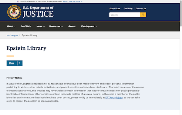 See for yourself: Access the DOJ’s Epstein Library at .justice.gov/epstein. | Screenshoit by CCNews
