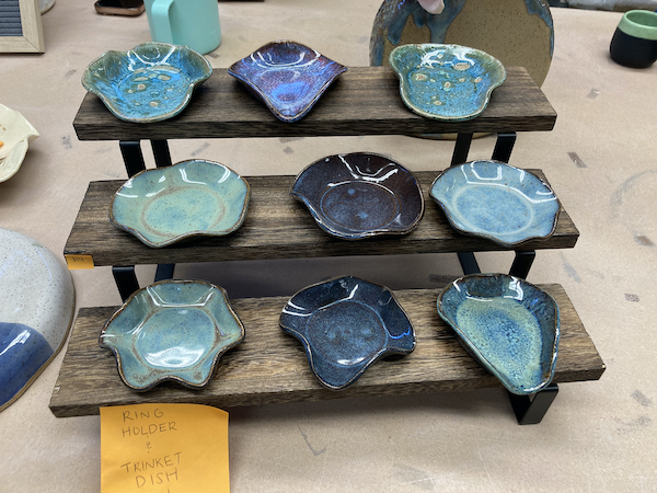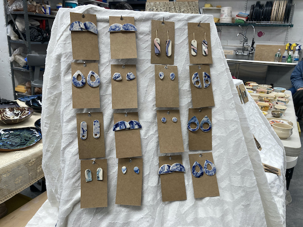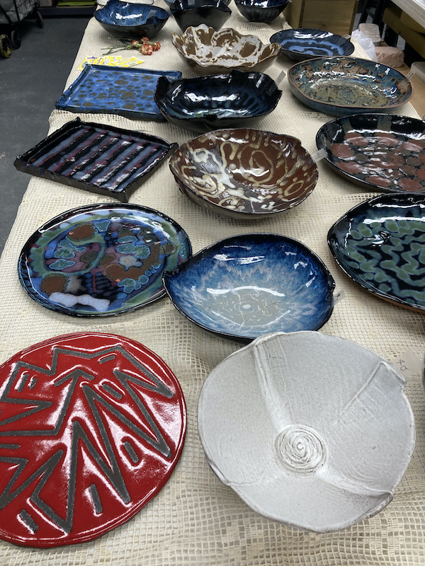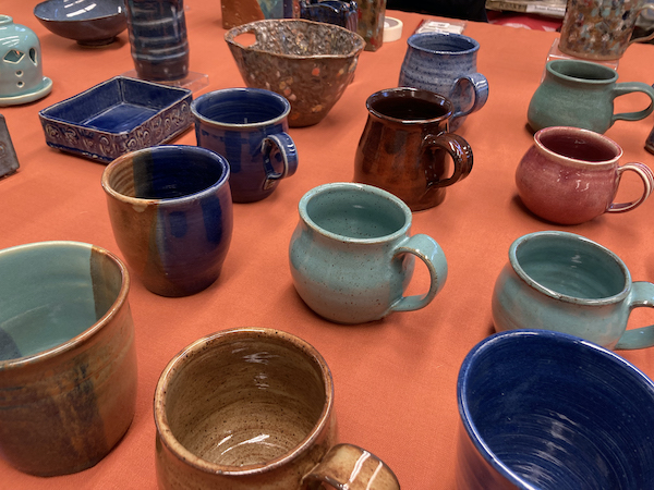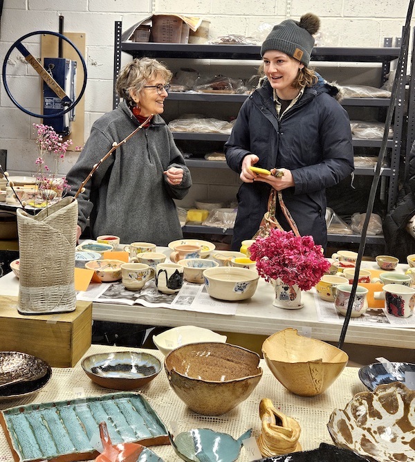 As for what the makers take away, Studio member Judith Sokoloff says, “Making pottery is my sanity, as it is for many in our Studio community. We can exist in that other world where imagination manifests in building, shaping, texturing, coloring clay. A world of surprise, happy accidents, breakage. A connection to 25,000 years of pottery making. Mud, water, fire. The joy of creating something beautiful that someone can use or just enjoy looking at.” Studio member Fritzie Brown, who called the annual Holiday Sale “our event of the year, and great fun,” further noted, “Our studio, like ceramics itself, can be messy–but the outcomes are splendid.”