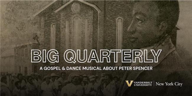Big Quarterly: A Gospel & Dance Musical About Peter Spencer | Thursday, April 23, 7pm-8pm at The Chapel at Vanderbilt University–NYC (Entrance: 429 W. 20th St.)Vanderbilt University NYC–whose inaugural class of undergraduate students will arrive on campus in mid–August–presents this evening of live musical performance, moderated dialogue, and community engagement centered on the historical figure Peter Spencer, founder of the nation’s first wholly independent Black church and the Big Quarterly. This program is open to the public. Tickets required; seats are limited. Proceeds support this not-for-profit production and performer pay. Tickets can be purchased through Eventbrite. Purchase here. To view the Events page of the Vanderbilt University NYC website, click here